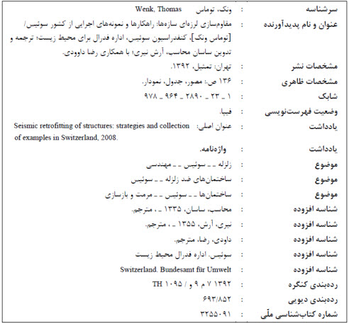 این کتاب که ترجمه ایست از کتاب Thomas Wenk توسط پروفسور ساسان محاسب، استاد دانشگاه علوم و فنون نوین دانشگاه تهران و همکاری مهندس آرش نیری، دکتری مهندسی عمران ژئوتکنیک در تابستان 1392 توسط انتشارات تمثیل به چاپ رسیده است. این کتاب در سه فصل و یک پیوست همراه با تصاویر آموزشی متعدد به چاپ رسیده است. فصل اول مرتبط با رفتار سازه های موجود ، فصل دوم مرتبط با راهکار های مقاوم سازی لرزه ای و فصل سوم در ارتباط با نمونه های اجرایی از کشور سوئیس میباشد.